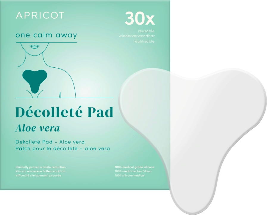 The Aloe Vera Décolleté Pad by APRICOT provides the décolleté area with intensive care. It is made from medical-grade silicone and enriched with high-quality organic aloe vera, which helps to smooth out lines and wrinkles. The pad can be reused up to 30 times. The pad is also ideal for use after sunbathing.