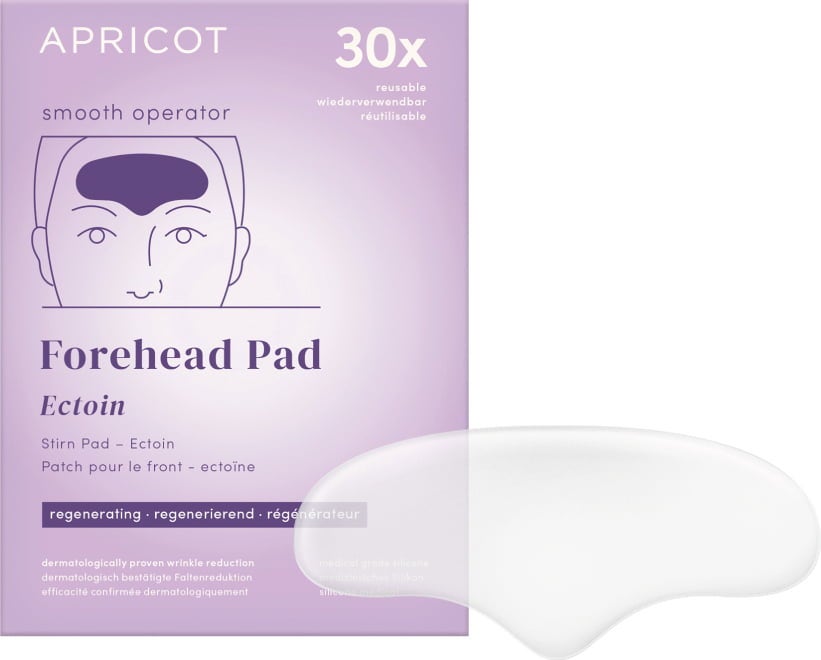The Ectoin Forehead Pad by APRICOT provides intensive and long-lasting care for the skin in the forehead area using natural ectoin. It is made from medical-grade silicone and can be reused up to 30 times. The pad protects against blue light. Fine lines are smoothed and reduced.