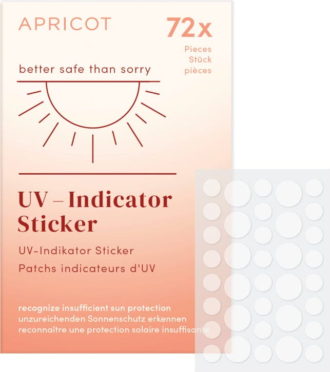 The APRICOT UV-Indicator Sticker helps you identify when your skin needs more sun protection. By changing colour, the sticker displays the UV intensity on the skin. This ensures that you always know when it's time to reapply sunscreen. The stickers are water and sweat-resistant.