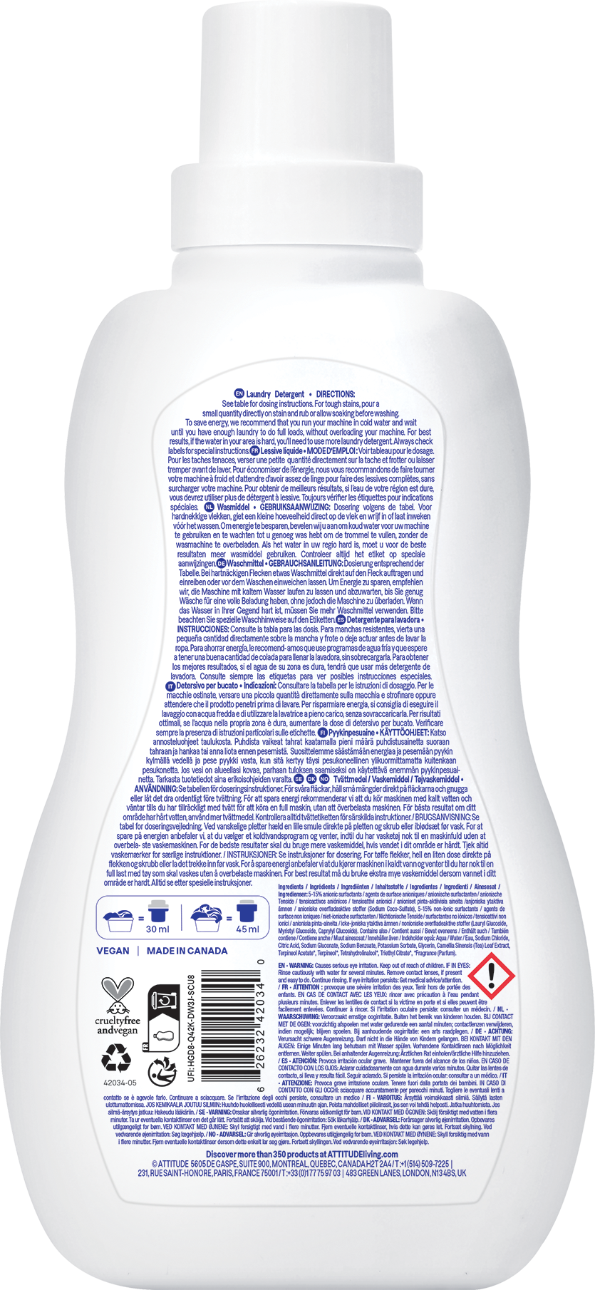 Fight stubborn stains the natural way with ATTITUDE's Lemon Peel Liquid Detergent.
