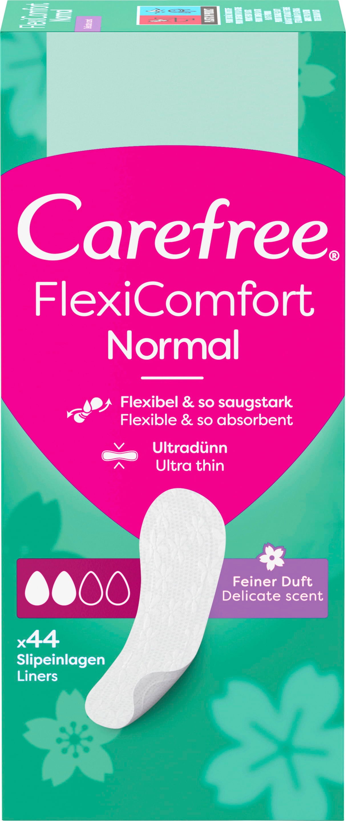Carefree FlexiComfort Normal Panty Liners, Light Fragrance, 44 Pcs