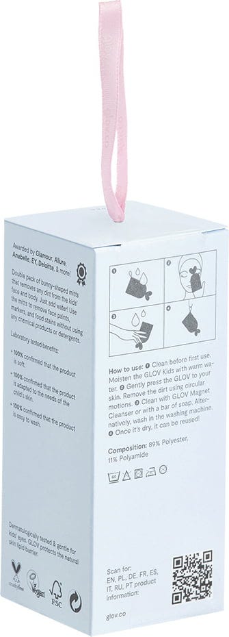 The body wash glove set contains a face and body cleansing glove for adults and one for children. The glove is made of GLOV's innovative microfibre that does not require any cleansing agents (soaps, shower gels, etc.). Microcirculation is boosted and the skin's natural pH-level preserved. May be used on skin suffering from atopic dermatitis.