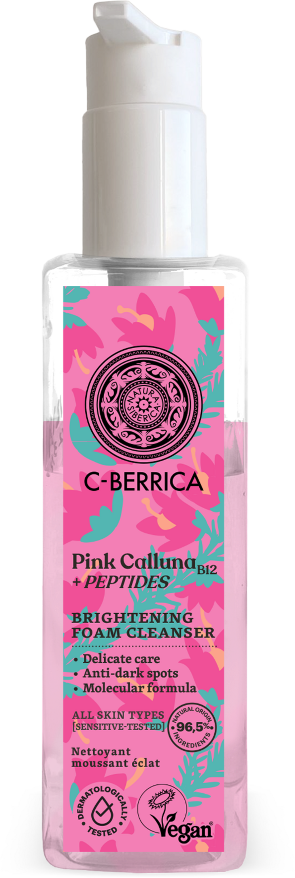 The C-Berrica Pink Calluna Brightening Foam Cleanser by Natura Siberica is a mild 2-phase foam cleanser that thoroughly removes dirt, make-up residues and excess oil. The light, foamy texture is easy to apply and pleasant to spread. It leaves the skin feeling fresh and preps it perfectly for subsequent care. This cleanser is ideal for daily use and can be easily integrated into a facial care routine.